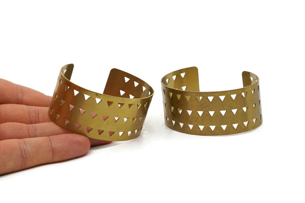 Triangle Ethnic Blank, Raw Brass Triangle Textured Cuff Bracelet Bangle (30x152x0.80mm) V011