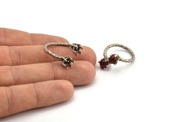 Antik Gümüş Kaplama Pirinç 6 Pençe Yüzük Boşlukları
