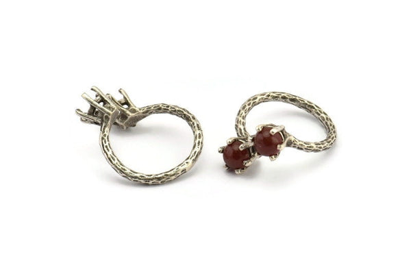 Ayarlanabilir Yüzük Boşluğu - 2 Antik Gümüş Kaplama Pirinç 6 Pençe Yüzük Boşluğu Ped Boyutu 5mm N0330 H0127