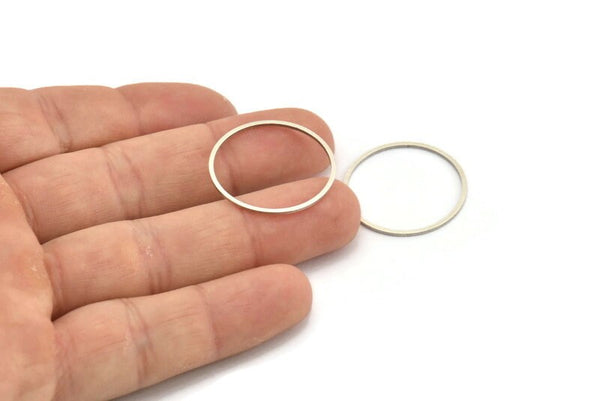 Antik Gümüş Kaplamalı Daire Konnektörler, 12 Antik Gümüş Kaplamalı Pirinç Daire Konnektör (25 mm) Bs-1108 H0008