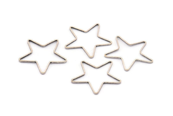 Antik Gümüş Yıldız Tılsımı, 12 Antik Gümüş Kaplama Pirinç Açık Yıldız Tılsımı (24x0,8x0,6 mm) BS 1078 H0136