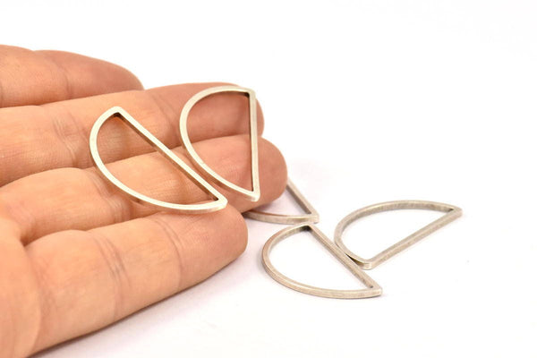 Pirinç Yarım Ay - 24 Antik Gümüş Kaplama Pirinç Yarım Daire Bağlantı Elemanı (15x30x1mm) D0011 H0104
