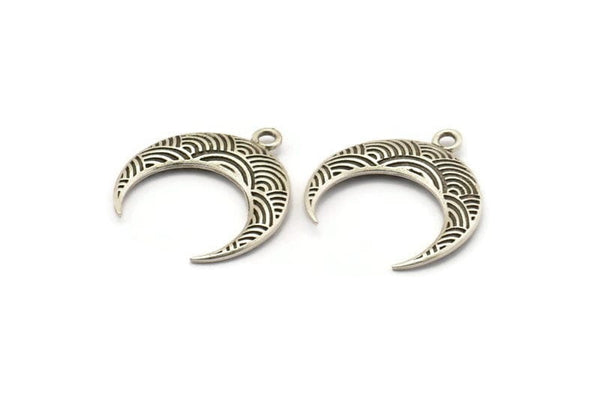 Antik Gümüş Kaplama Pirinç Dokulu Boynuz Takılar, Kolye Ucu, Mücevher Parçası