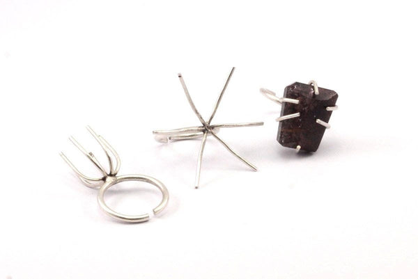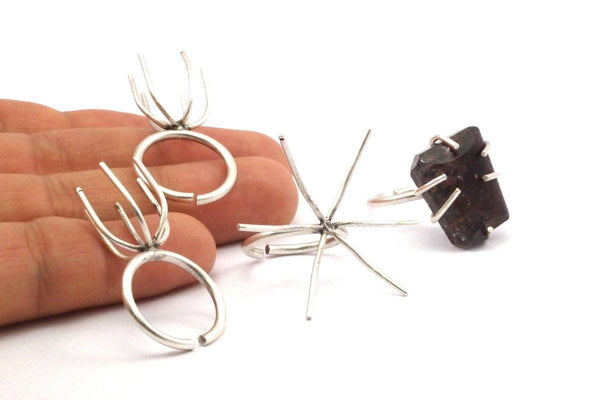 Doğal Taşlar İçin 6 Pençeli Antik Gümüş Kaplama Yüzük Boşlukları
