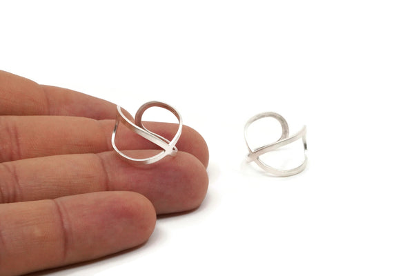 Copper Infinity Ring - 4 Antique Silver Plated Copper Adjustable Infinite Ring Settings - 16-17mm / 23 Gauge Mn88