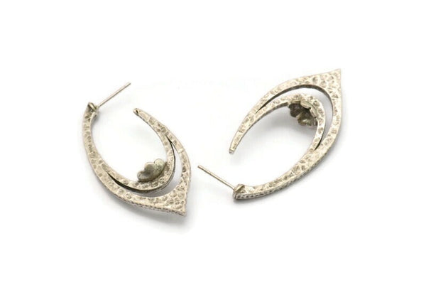 Küpe Çivisi, 2 Antik Gümüş Kaplama Pirinç - Markiz Şekilli Çivili Küpe, 7 mm Taş İçin Pedli, Gümüş Küpeler (46x21x1,8 mm) N2421 H155