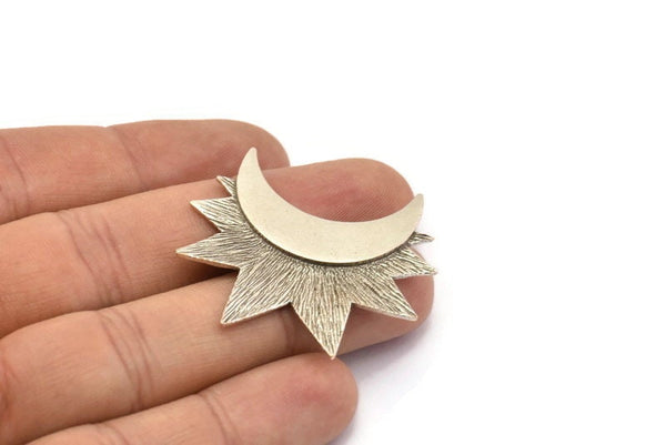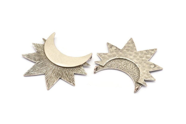 Ay ve Güneş, 1 Antik Gümüş Kaplama Hilal ve Yarı Güneş Etnik Kolye, 2 Halka, Bulgular, Tılsımlar (36,5x41x0,9 mm) U133 H377