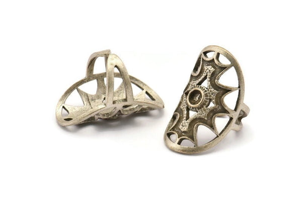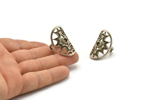 Gümüş Boho Yüzük, Antik Gümüş Kaplama Pirinç Boho Yüzük, 1 Taş Ayarlı - Ped Boyutu 4 mm N1788 H1522