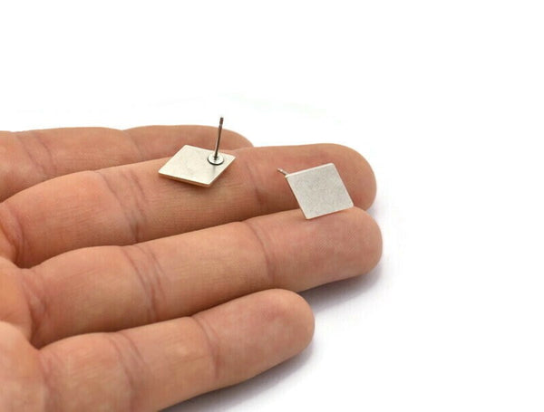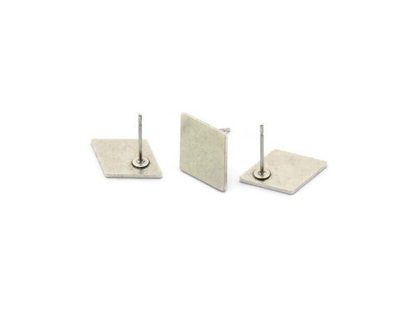 Gümüş Elmas Küpe, 4 Antik Gümüş Kaplama Pirinç Elmas Şekilli Küpe (17x12x0,90 mm) A2582 A0141