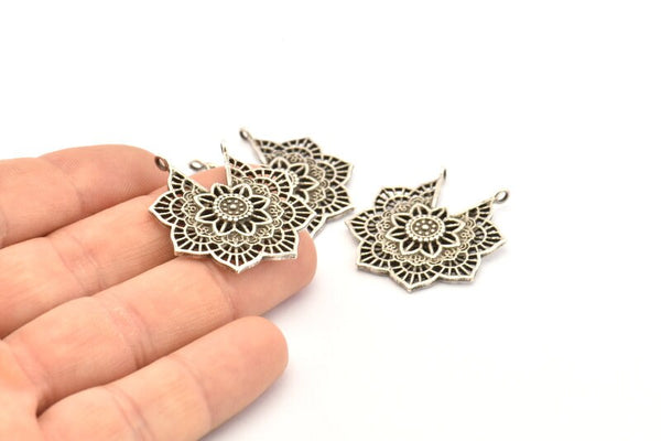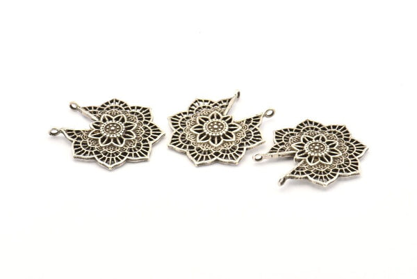 Gümüş Etnik Charm, Antik Gümüş Kaplama Pirinç Etnik Charmlar, 2 Halka, Küpeler, Bulgular, Kolye Uçları (31x28 mm) N0836 H0794