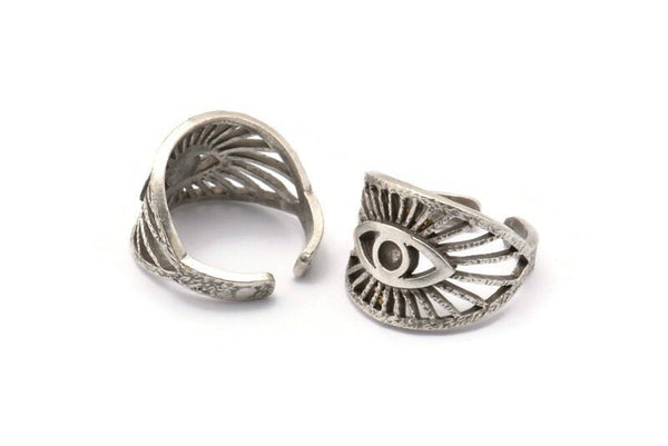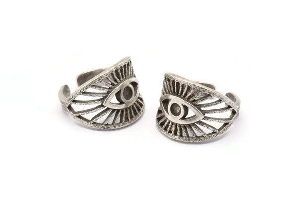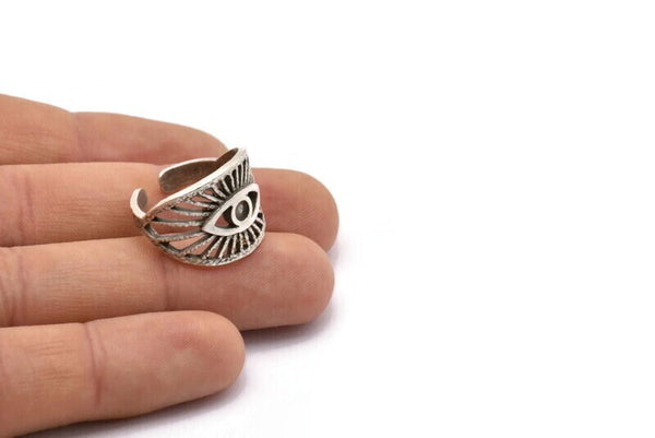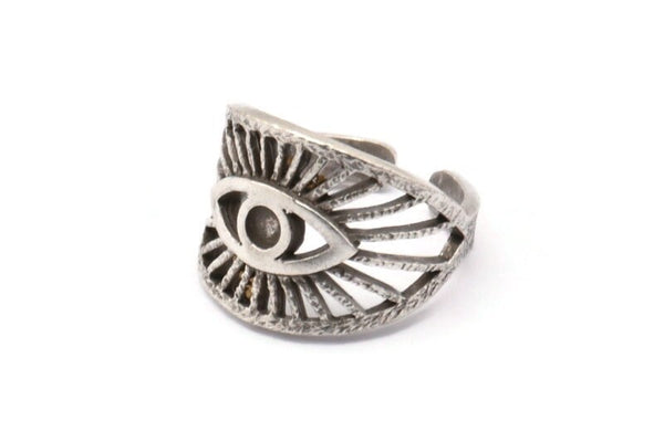 Antik Gümüş Kaplama Pirinç Göz Yüzük, 1 Taşlı - Ped Boyutu 3mm