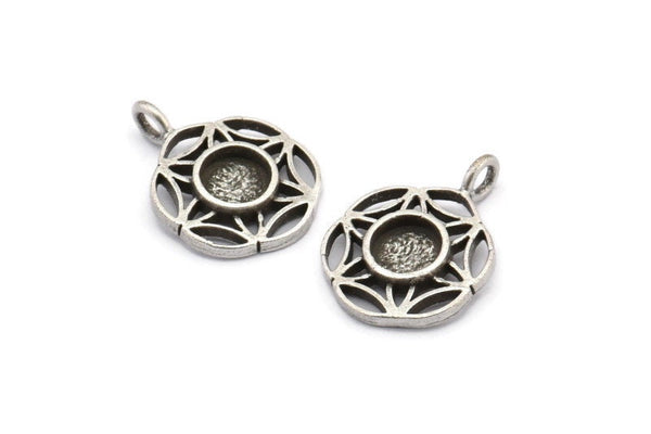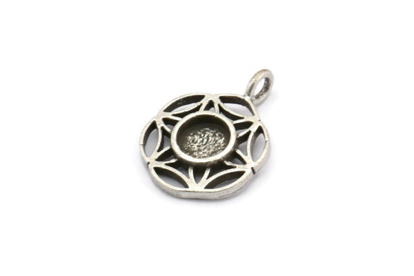 Antik Gümüş Kaplama Pirinç Çiçek Takıları 1 Döngülü - Ped Boyutu 6mm