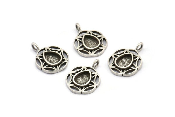Gümüş Çiçek Tılsımı, 1 Halkalı 4 Antik Gümüş Kaplamalı Pirinç Çiçek Tılsımı - Ped Boyutu 6x8mm (15mm) N2064 H1475