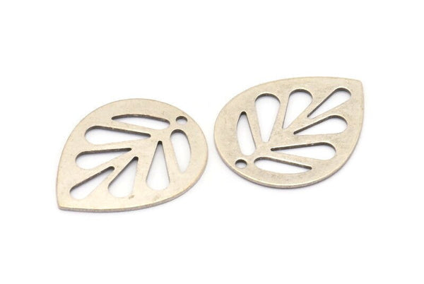 Gümüş Yaprak Tılsımı, 1 Delikli 6 Antik Gümüş Kaplama Pirinç Yaprak Tılsımı, Küpeler, Kolye Uçları, Bulgular (30x24x0,80 mm) D956 H1026