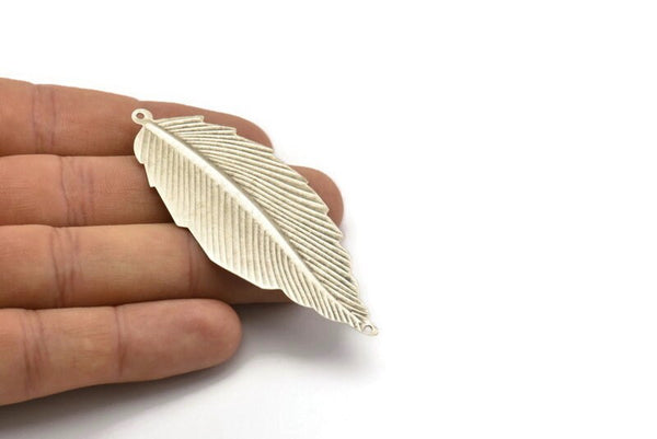 2 Delikli Antik Gümüş Kaplama Pirinç Yaprak Kolye