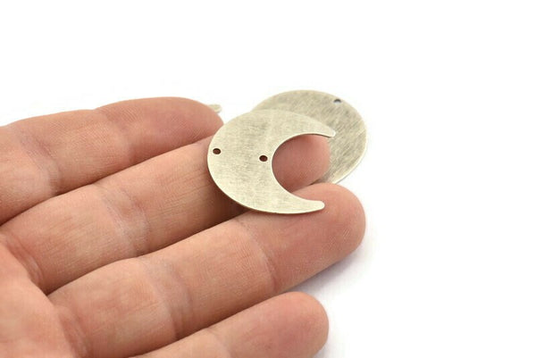 Gümüş Ay Tılsımı, 2 Delikli 10 Dokulu Antik Gümüş Kaplama Pirinç Boynuz Tılsımı (25x12x0,50 mm) D1140 H0312