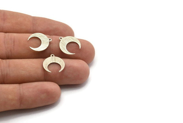 Gümüş Ay Tılsımı, 1 Döngülü 12 Dokulu Antik Gümüş Kaplama Pirinç Hilal, Küpeler (16x14x0,80 mm) M01572 H1015