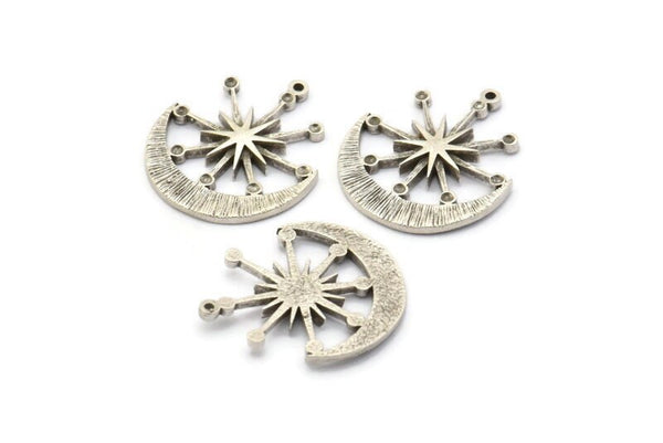 Gümüş Ay Tılsımı, 1 Döngülü 2 Antik Gümüş Kaplama Pirinç Ay ve Yıldız Tılsımı (27x23x2mm) N1706 H1577