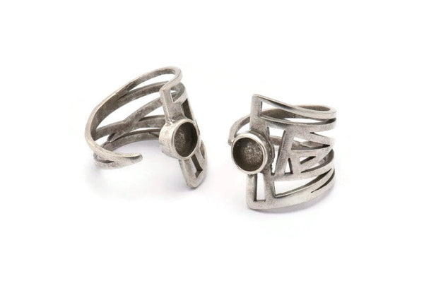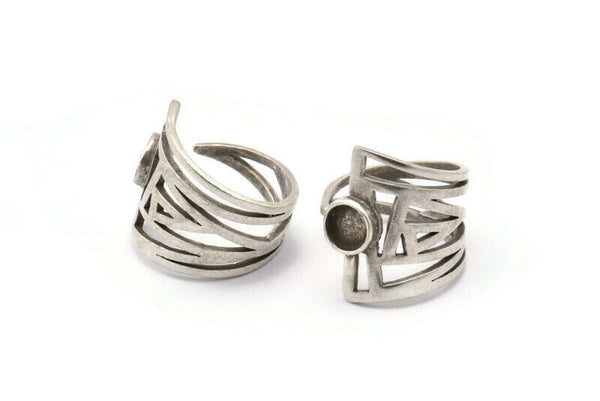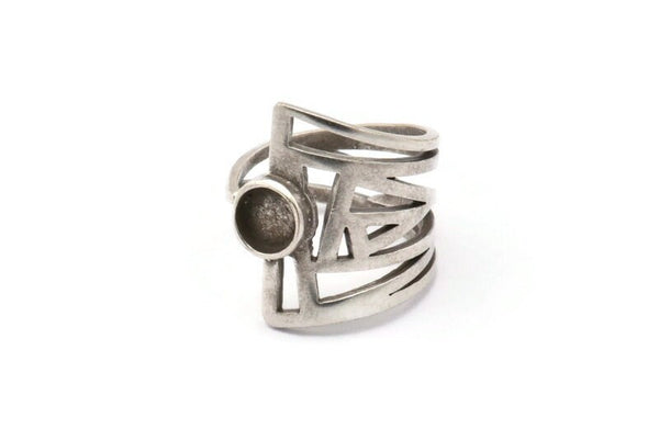 Antik Gümüş Kaplama Pirinç Yüzük, 1 Taşlı - Ped Boyutu 6mm