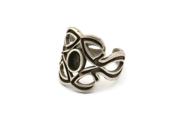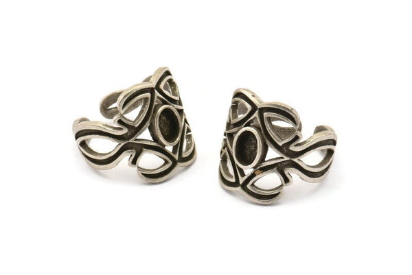 Antik Gümüş Kaplama Pirinç Yüzükler 1 Taş Ayarlı - Ped Boyutu 6x4mm