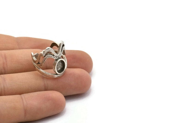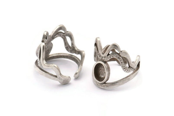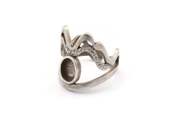 Gümüş Yüzük Ayarı, Antik Gümüş Kaplama Pirinç Duke Yüzüğü, 1 Taş Ayarı - Ped Boyutu 8x6mm N1948 H1485