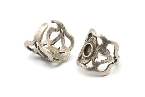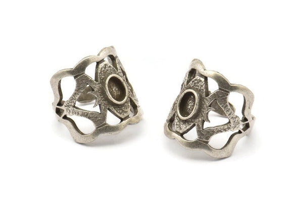 Gümüş Yüzük Ayarı, Antik Gümüş Kaplama Pirinç Duke Yüzük, 1 Taş Ayarlı - Ped Boyutu 4x6mm N1897 H1531