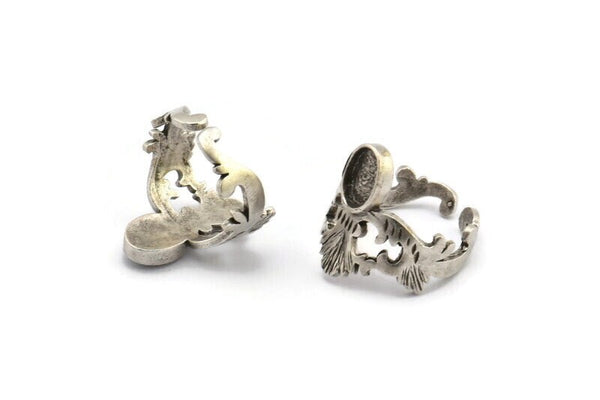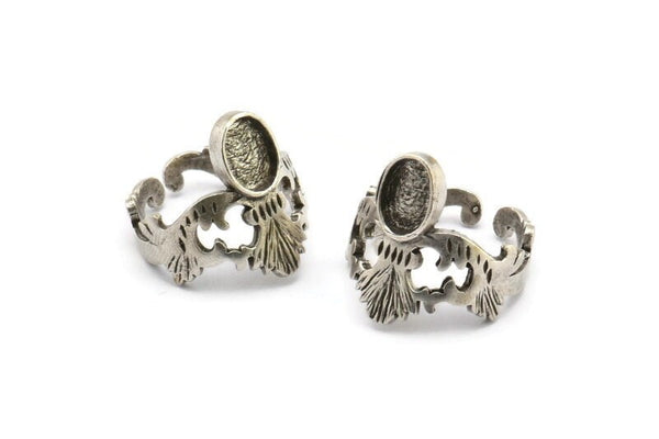 Gümüş Yüzük Ayarı, 1 Taş Ayarlı Antik Gümüş Kaplama Pirinç Yüzükler - Ped Boyutu 8x6mm N1805 H1542