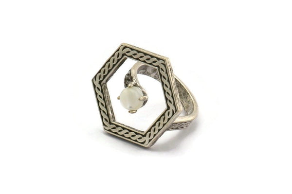 Antik Gümüş Kaplama Pirinç Altıgen Yüzük, 1 Taşlı - Ped Boyutu 6mm