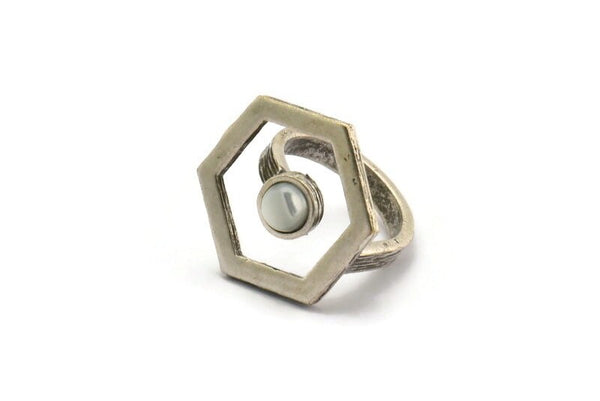 Antik Gümüş Kaplama Pirinç Altıgen Yüzük, 1 Taşlı - Ped Boyutu 6mm