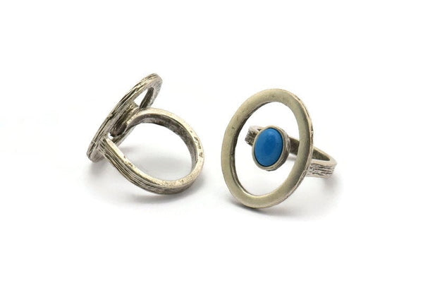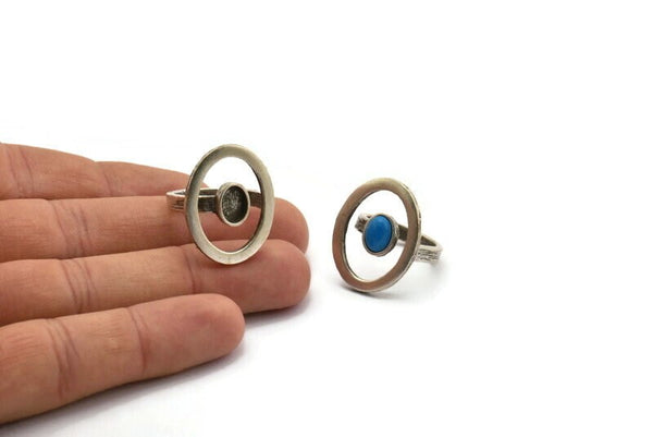 Gümüş Yüzük Ayarları, 1 Taşlı Antik Gümüş Kaplamalı Pirinç Oval Yüzük - Ped Boyutu 8x6mm N2291 H1606