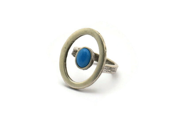 Antik Gümüş Kaplama Pirinç Oval Yüzük, 1 Taşlı - Ped Boyutu 8x6mm