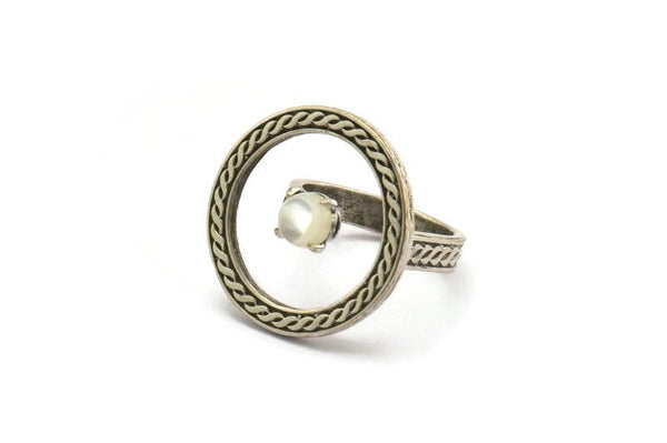 Antik Gümüş Kaplama Pirinç Yuvarlak Yüzük, 1 Taşlı - Ped Boyutu 6mm