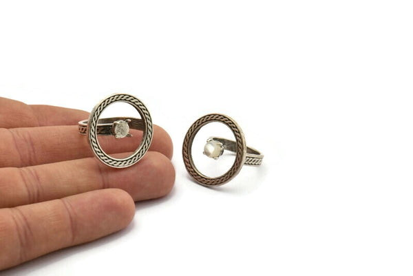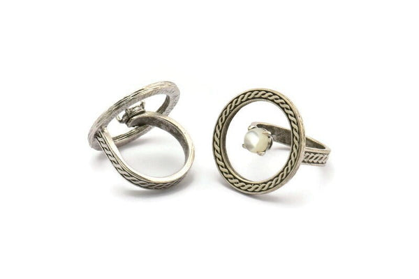 Gümüş Yüzük Ayarları, Antik Gümüş Kaplamalı Pirinç Yuvarlak Yüzük, 1 Taş Ayarı - Ped Boyutu 6mm N2287 H1609