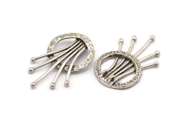 Gümüş Rozet Kolye, 2 Halka, Bulgular, Tılsımlar ile 1 Antik Gümüş Kaplama Pirinç Rozet Kolye (38x23,5 mm) U119 H0384