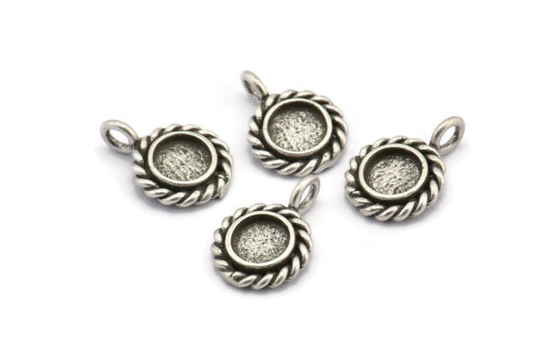 Antik Gümüş Kaplama Pirinç Yuvarlak Charms 1 Döngülü - Ped Boyutu 6mm