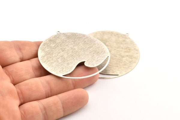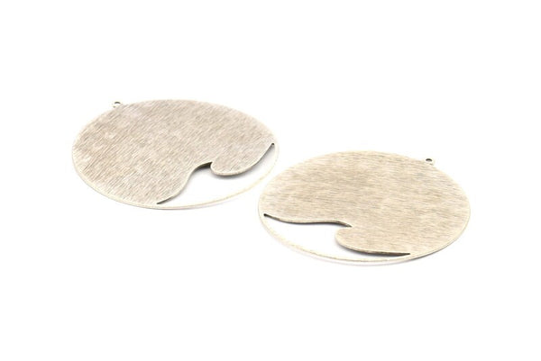 Gümüş Yuvarlak Tılsımlar, 1 Halkalı 2 Dokulu Antik Gümüş Kaplama Pirinç Yuvarlak Tılsım, Kolye Uçları, Bulgular (51x54x0,60 mm) D1004 H1105