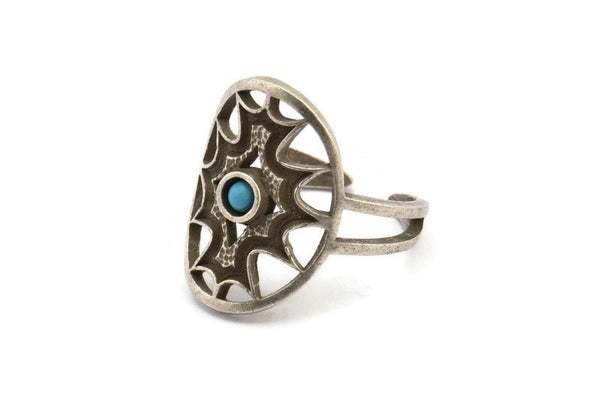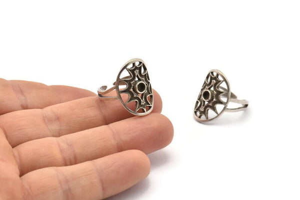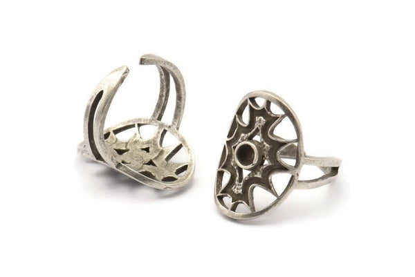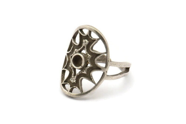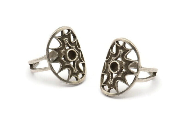 Antik Gümüş Kaplama Pirinç Kraliyet Yüzükleri 1 Taş Ayarlı - Ped Boyutu 3mm