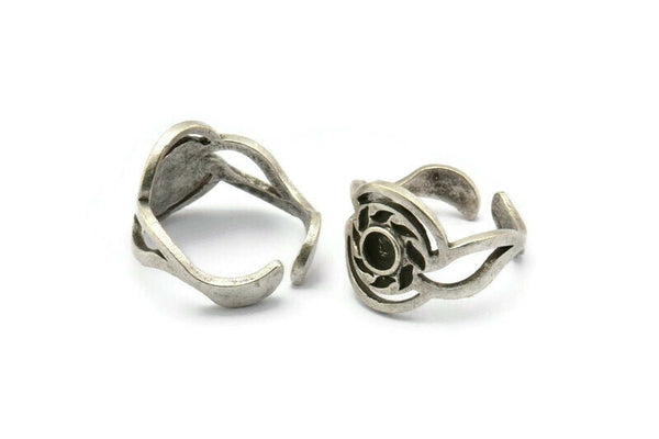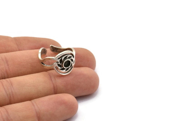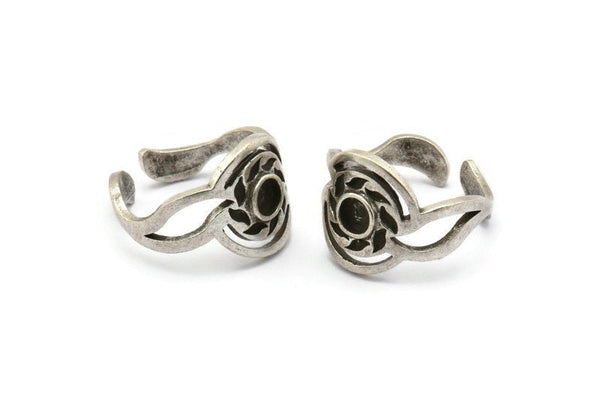 Antik Gümüş Kaplama Pirinç Kraliyet Yüzükleri 1 Taş Ayarlı - Ped Boyutu 4mm