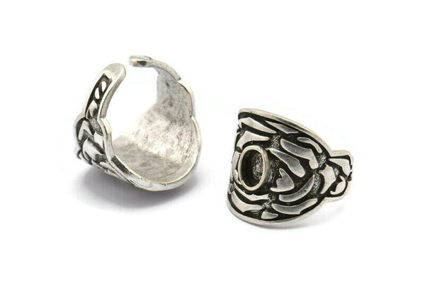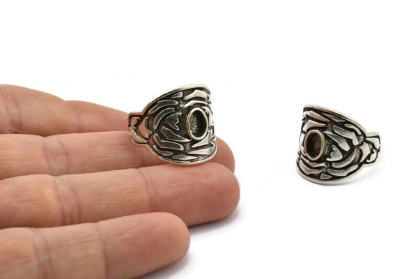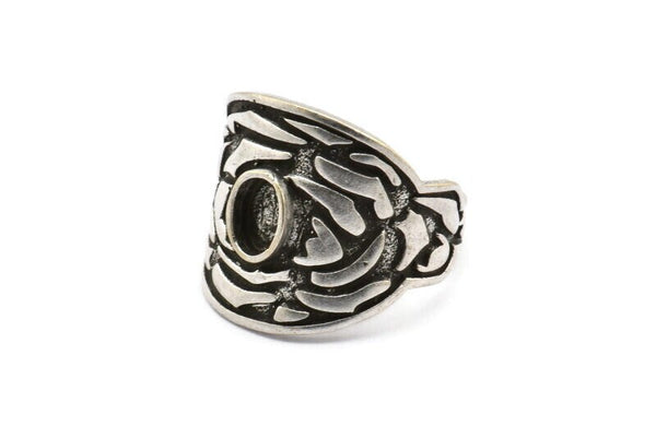 Antik Gümüş Kaplama Pirinç Kraliyet Yüzüğü 1 Taş Ayarlı - Ped Boyutu 4x6mm