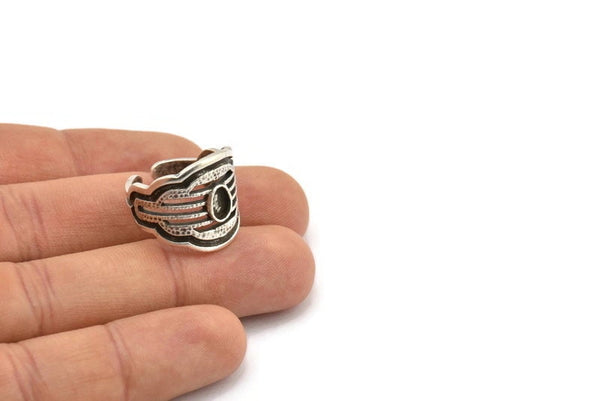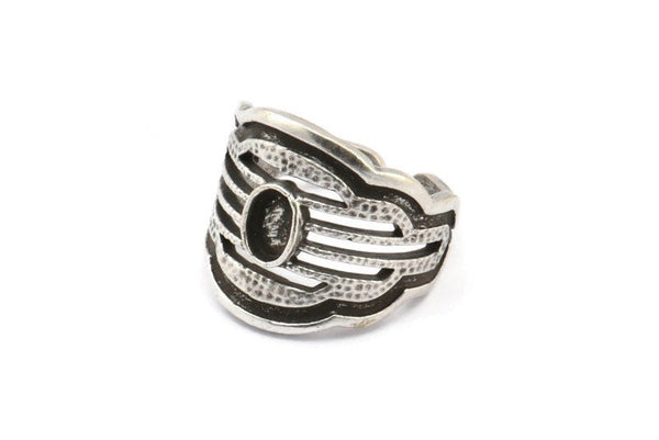 Antik Gümüş Kaplama Pirinç Kraliyet Yüzüğü 1 Taş Ayarlı - Ped Boyutu 6x4mm
