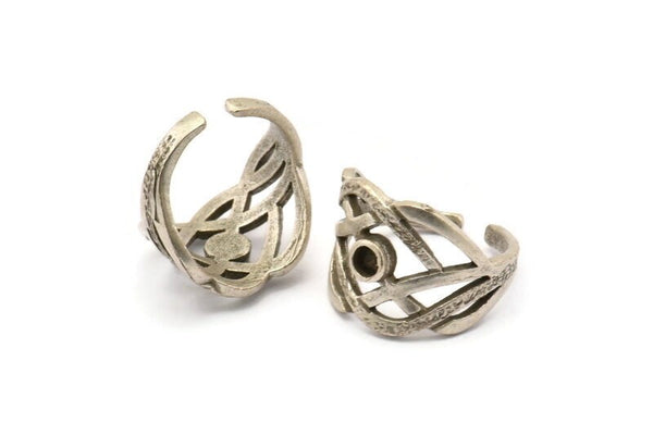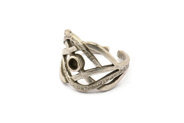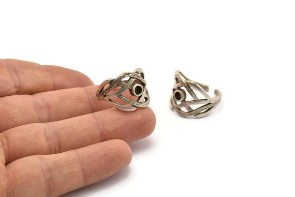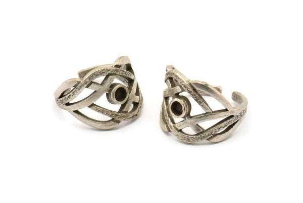 Antik Gümüş Kaplama Pirinç Kraliyet Yüzükleri 1 Taş Ayarlı - Ped Boyutu 3mm