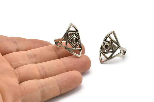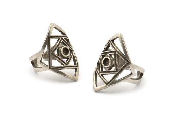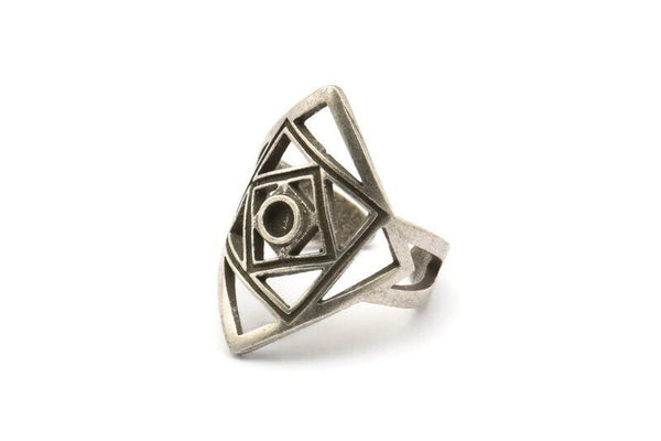 Antik Gümüş Kaplama Pirinç Kraliyet Yüzükleri 1 Taş Ayarlı - Ped Boyutu 3mm