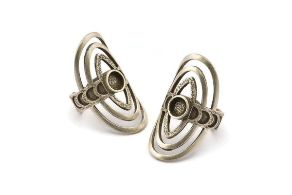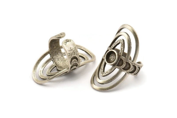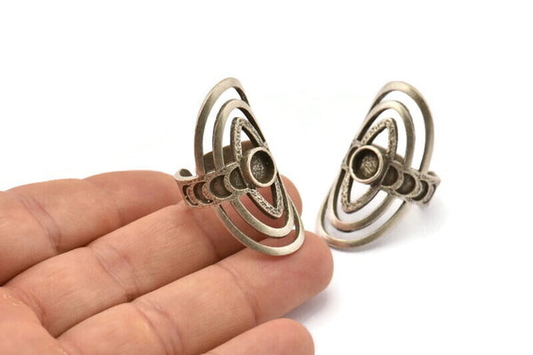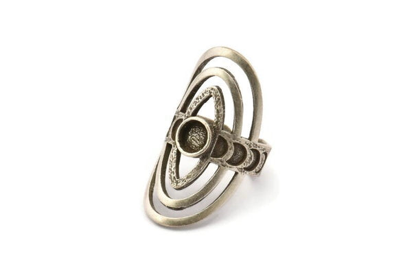 Antik Gümüş Kaplama Pirinç Kraliyet Yüzükleri 1 Taş Ayarlı - Ped Boyutu 6mm
