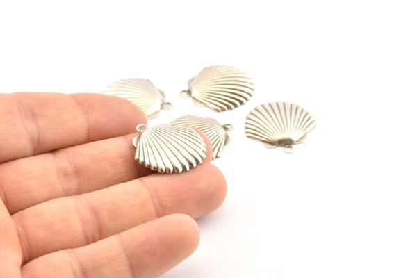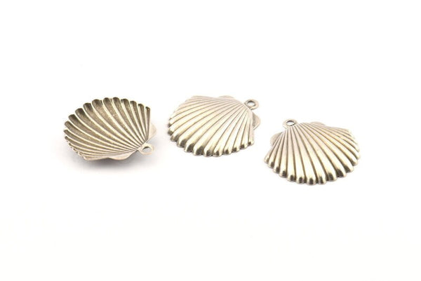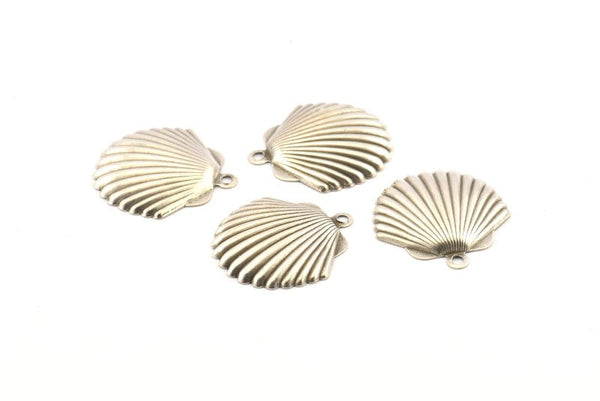 Gümüş Deniz Kabuğu Charm, 1 Döngülü 12 Antik Gümüş Kaplama Pirinç Deniz Kabuğu Charm, Kolye Uçları, Küpeler, Bulgular (22x23mm) D1165 H1044