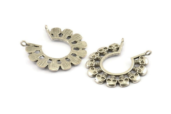2 Halkalı Antik Gümüş Kaplama Pirinç Kafatası Kolye