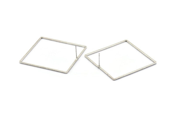 Gümüş Kare Küpe, 2 Antik Gümüş Kaplama Pirinç Kare Küpe (42 mm) Bs 1310 A1778 H0204