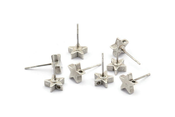 Gümüş Yıldız Küpe, 6 Antik Gümüş Kaplama Pirinç Yıldız Küpe (8x2,6 mm) D0126 A2008