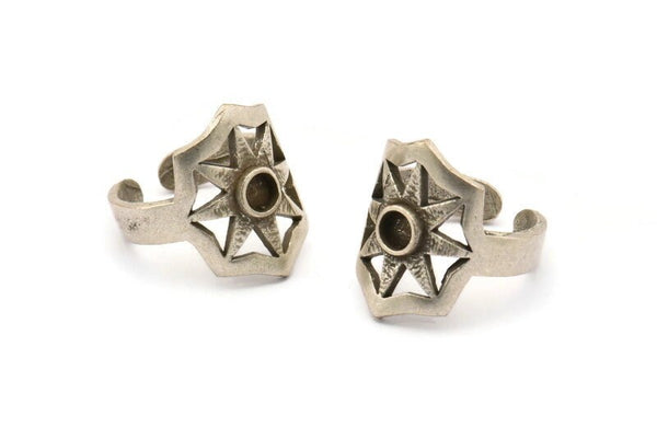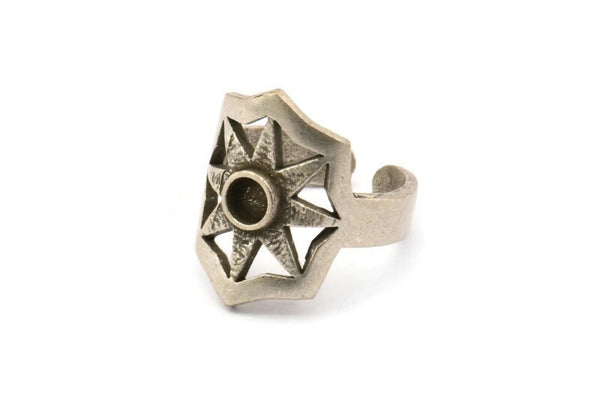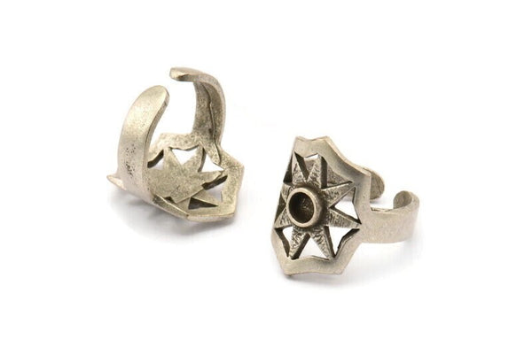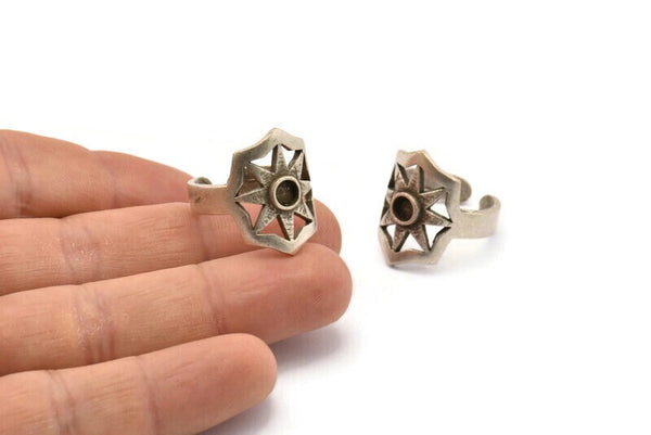 Antik Gümüş Kaplama Pirinç Etnik Yıldız Yüzükler 1 Taş Ayarlı - Ped Boyutu 4mm