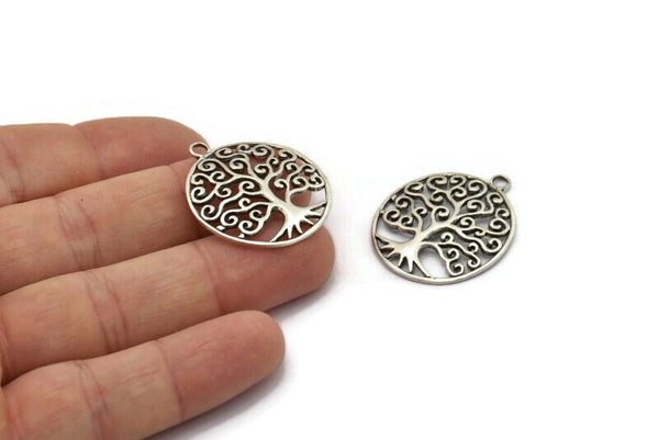 1 Halkalı Antik Gümüş Kaplama Pirinç Ağaç Kolye