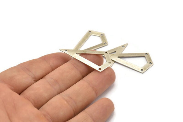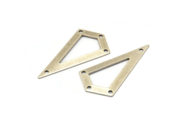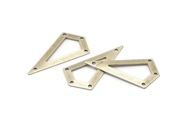 Gümüş Üçgen, 4 delikli 6 Antik Gümüş Kaplama Üçgen Tılsım (38x20x0,60 mm) U038